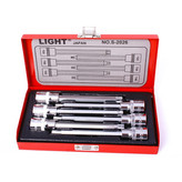 جعبه بکس بلند ستاره ای 6 پارچه لایت مدل LIGHT S 2026 یک ابزار کاربردی و باکیفیت است که برای باز و بسته کردن پیچ و مهره های ستاره ای با سایزهای مختلف مورد استفاده قرار می گیرد. این محصول توسط شرکت لایت تولید شده است که یکی از برندهای معتبر در زمینه تولید ابزارآلات است.