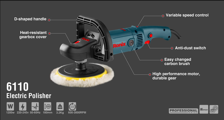 ویژگیهای پولیش برقی دیمردار رونیکس مدل 6110: