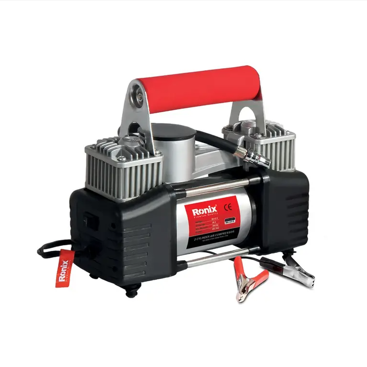 کمپرسور باد دو سیلندر اتومبیل رونیکس مدل RH-4212 ابزاری کاربردی و پرکاربرد برای باد کردن تیوپ، توپ و سایر وسایل بادی است. این دستگاه با توان 12 ولت و فشار 150 PSI، قادر به انجام کارهای معمولی و نیمه سنگین میباشد.